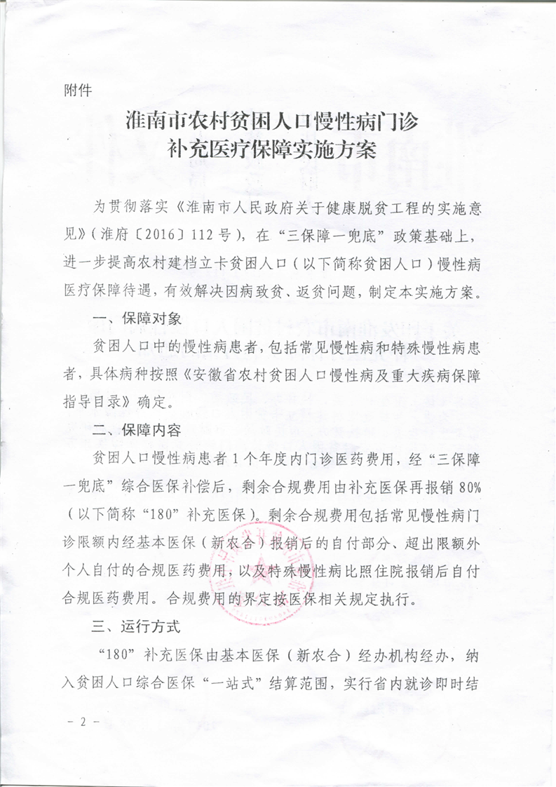淮南市农村贫困人口慢性病门诊补充医疗保障实施方案的通知