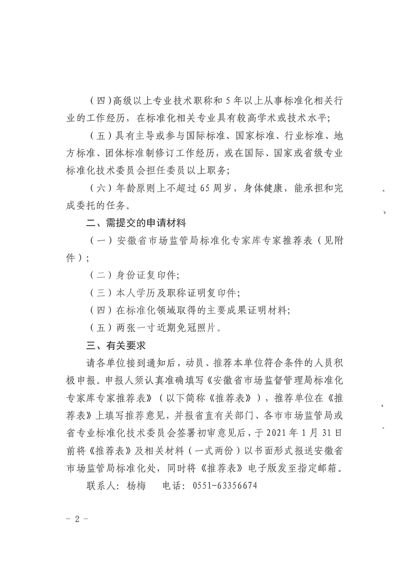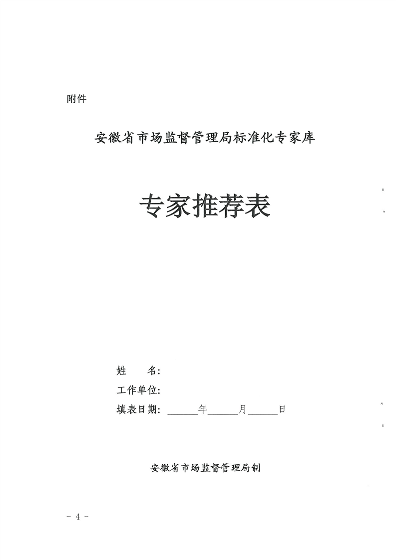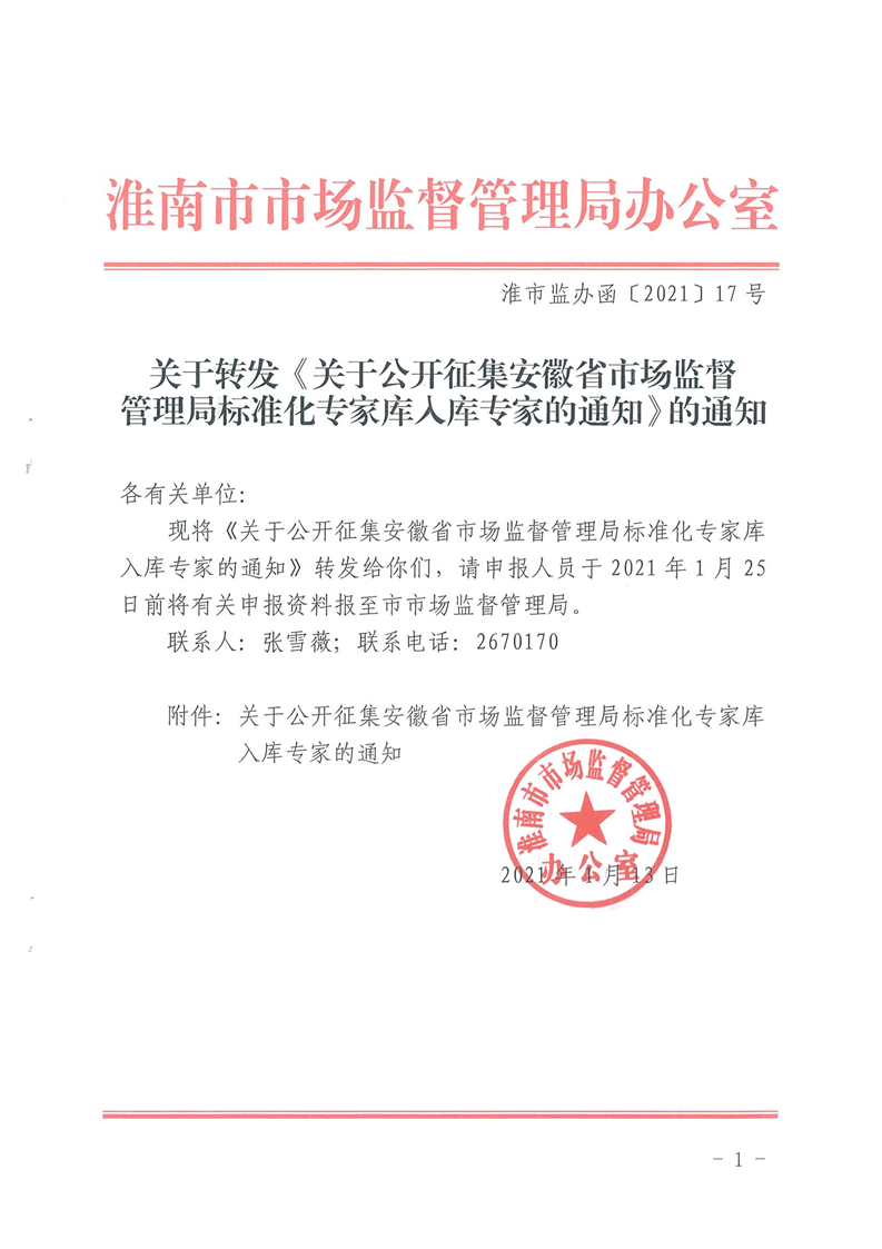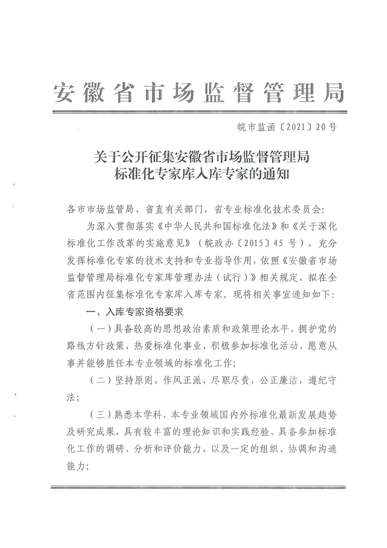 关于转发《关于公开征集安徽省市场监督管理局标准化专家库入库专家的通知》的通知