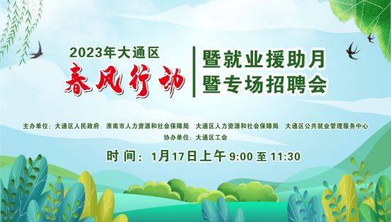【就业救助】2023年大通区春风行动暨就业援助月专场招聘会即将盛大开幕