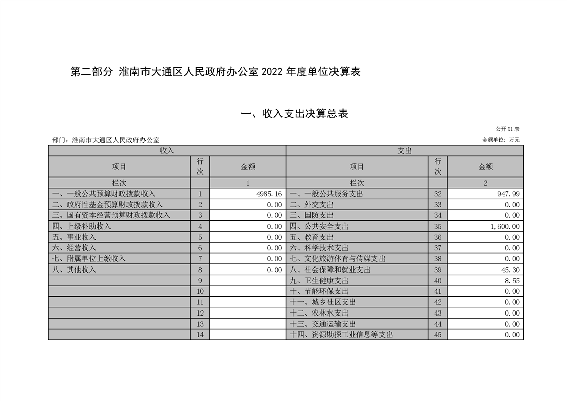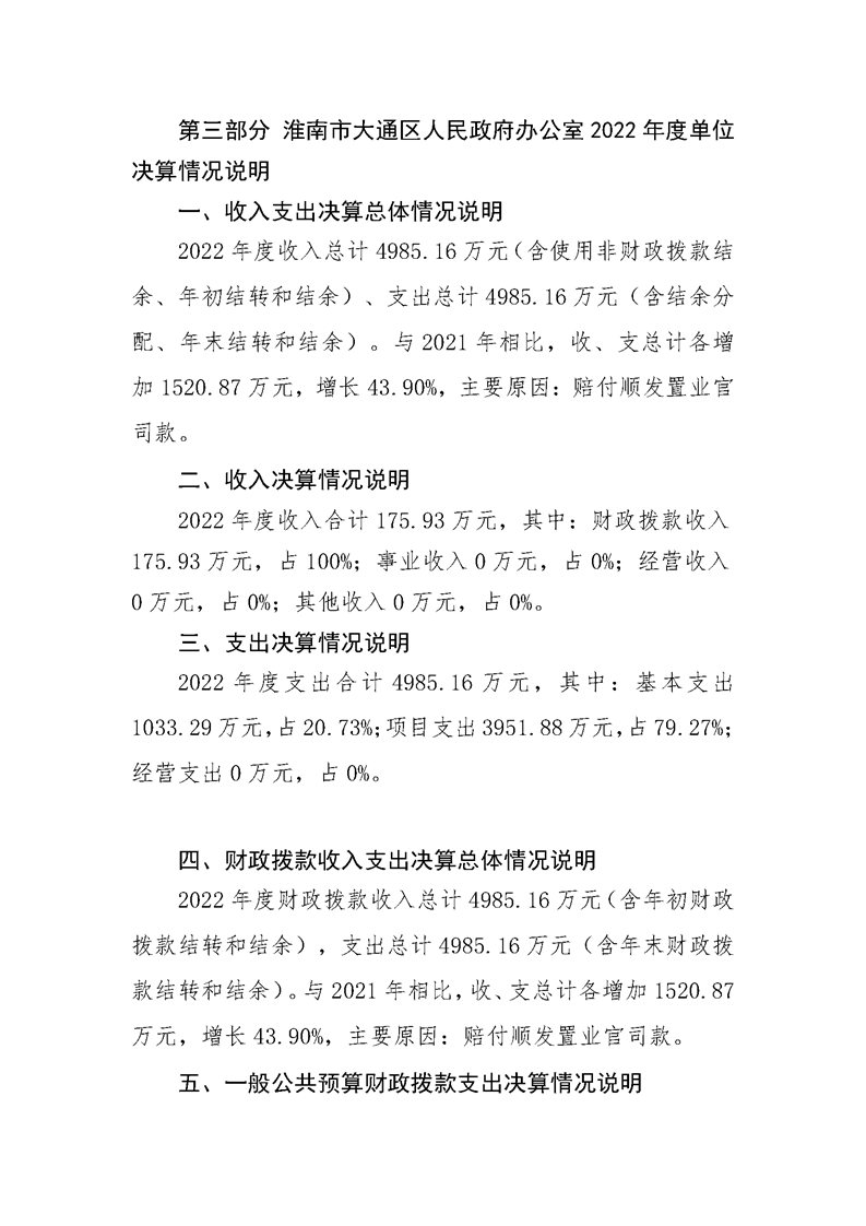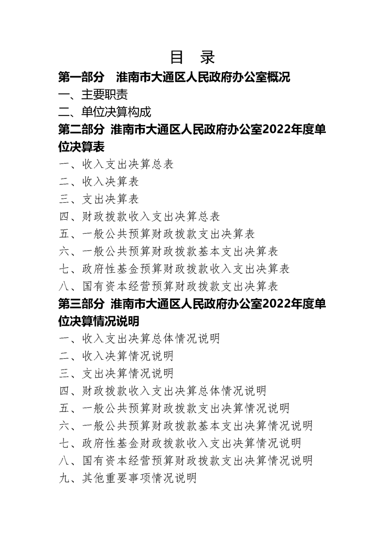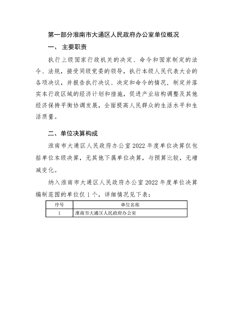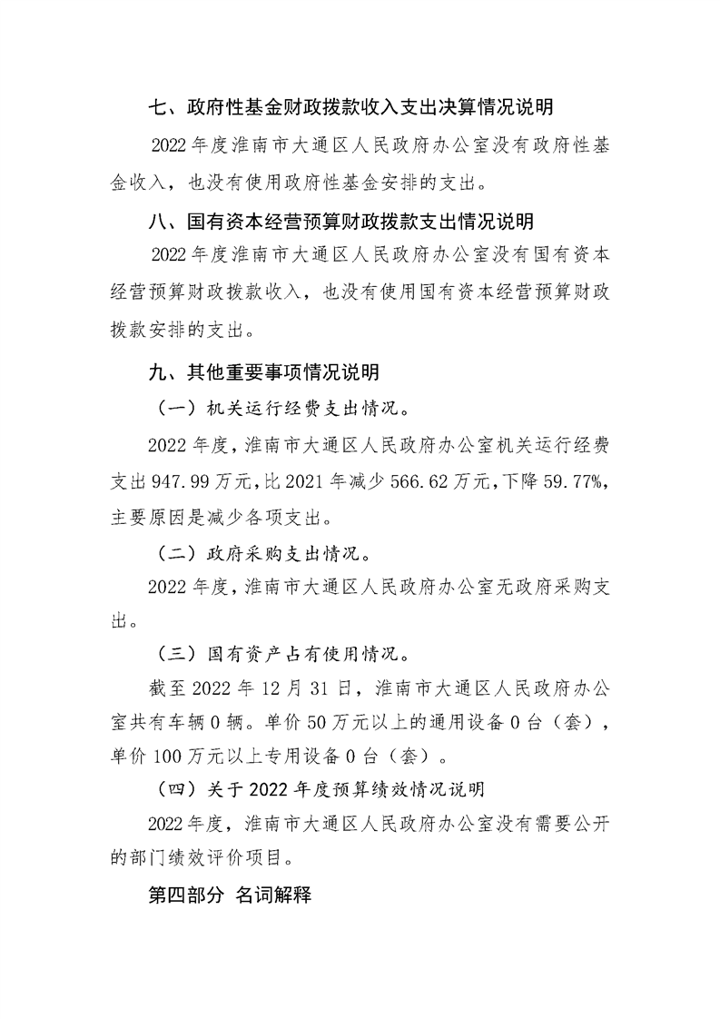 淮南市大通区人民政府办公室2022年度单位决算(本级)