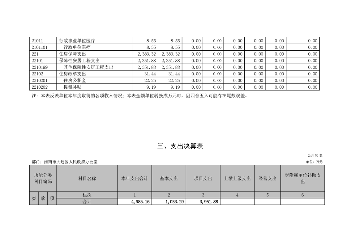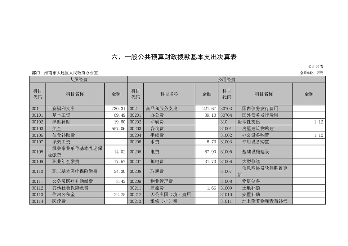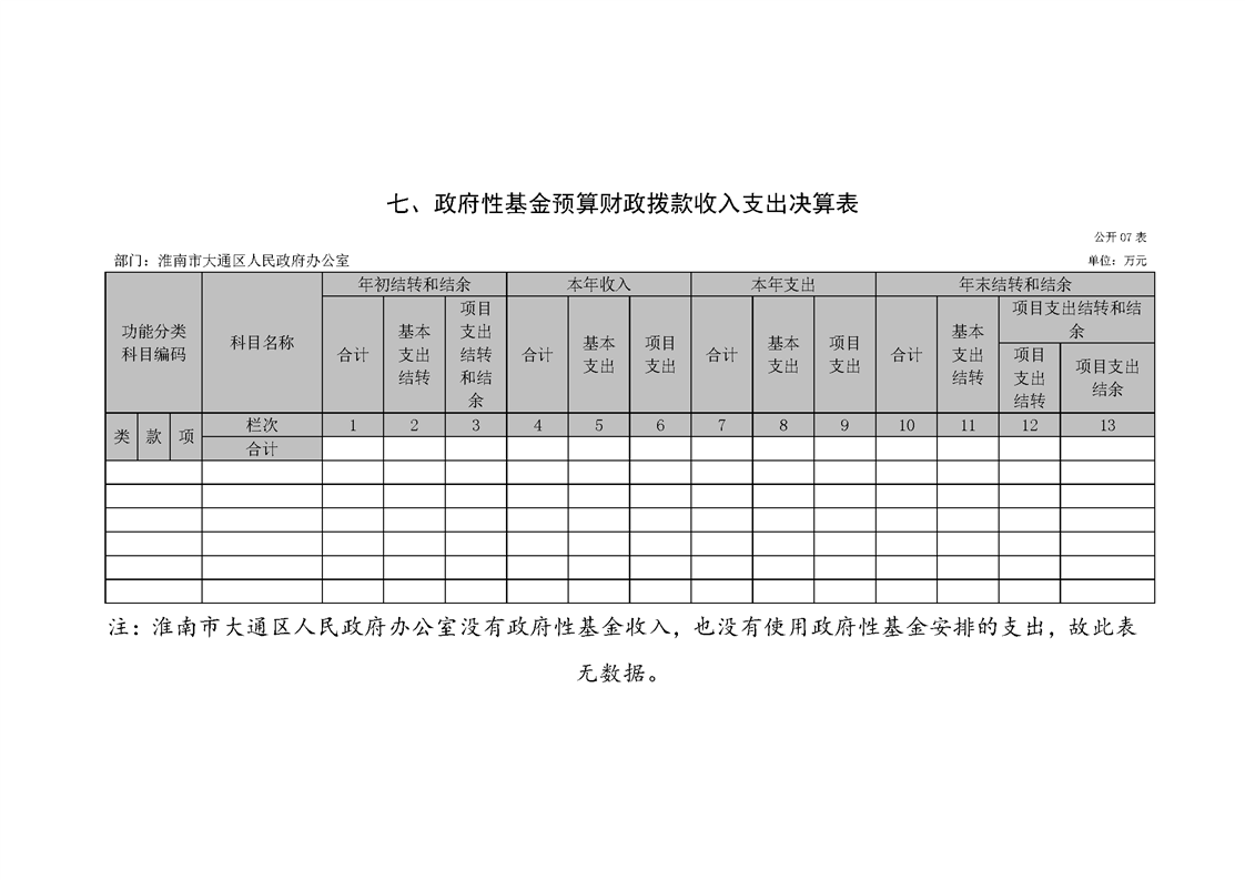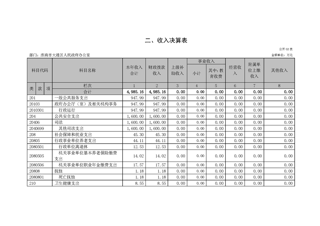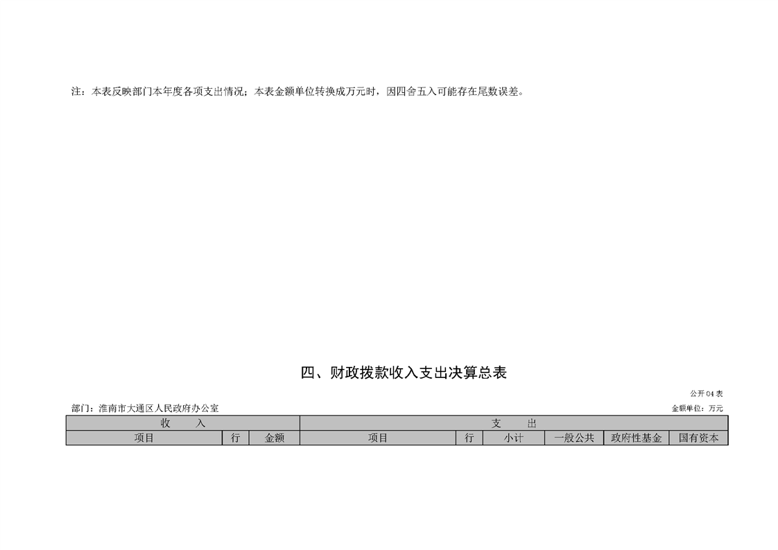 淮南市大通区人民政府办公室2022年度单位决算(本级)