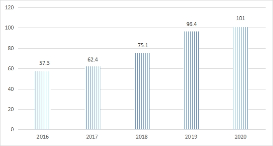 图1 2016—2020年大通区地区生产总值 单位:亿元