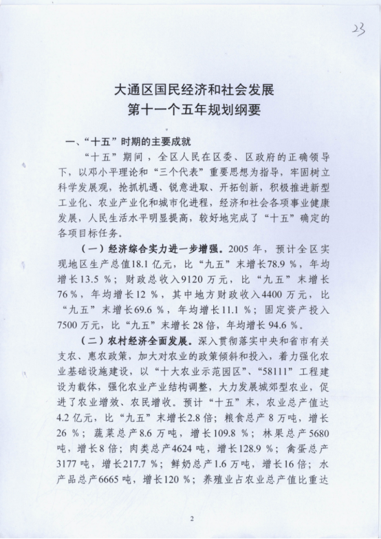 大通区“十一五”规划