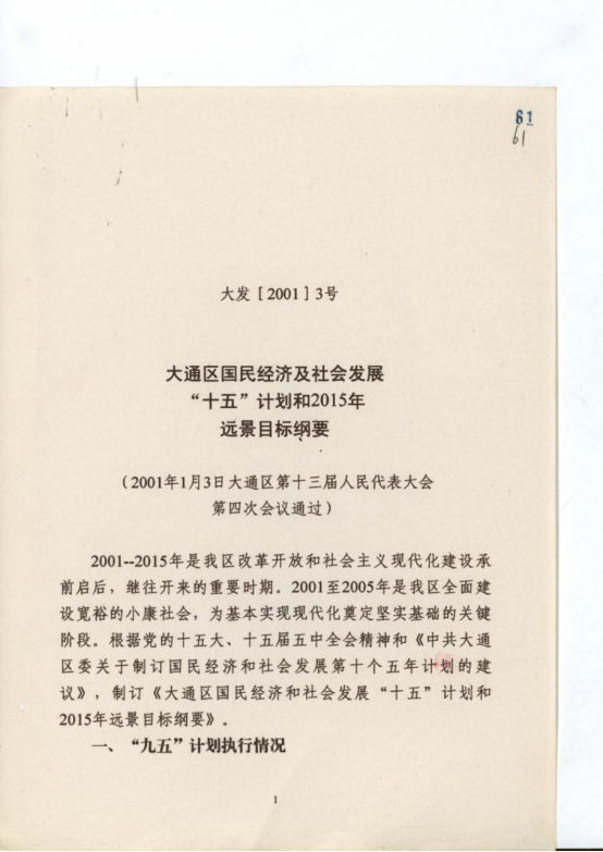 大通区“十五”规划