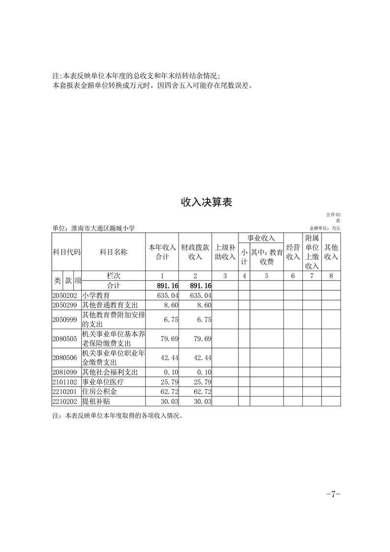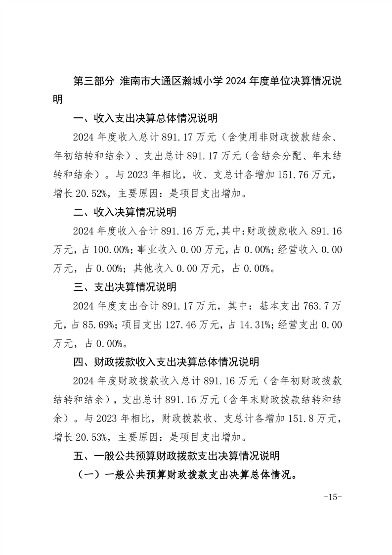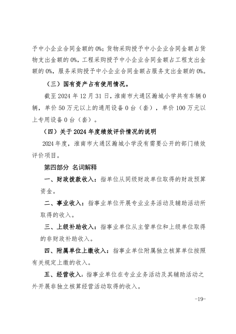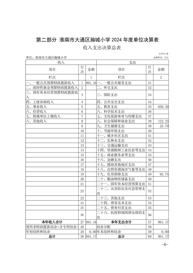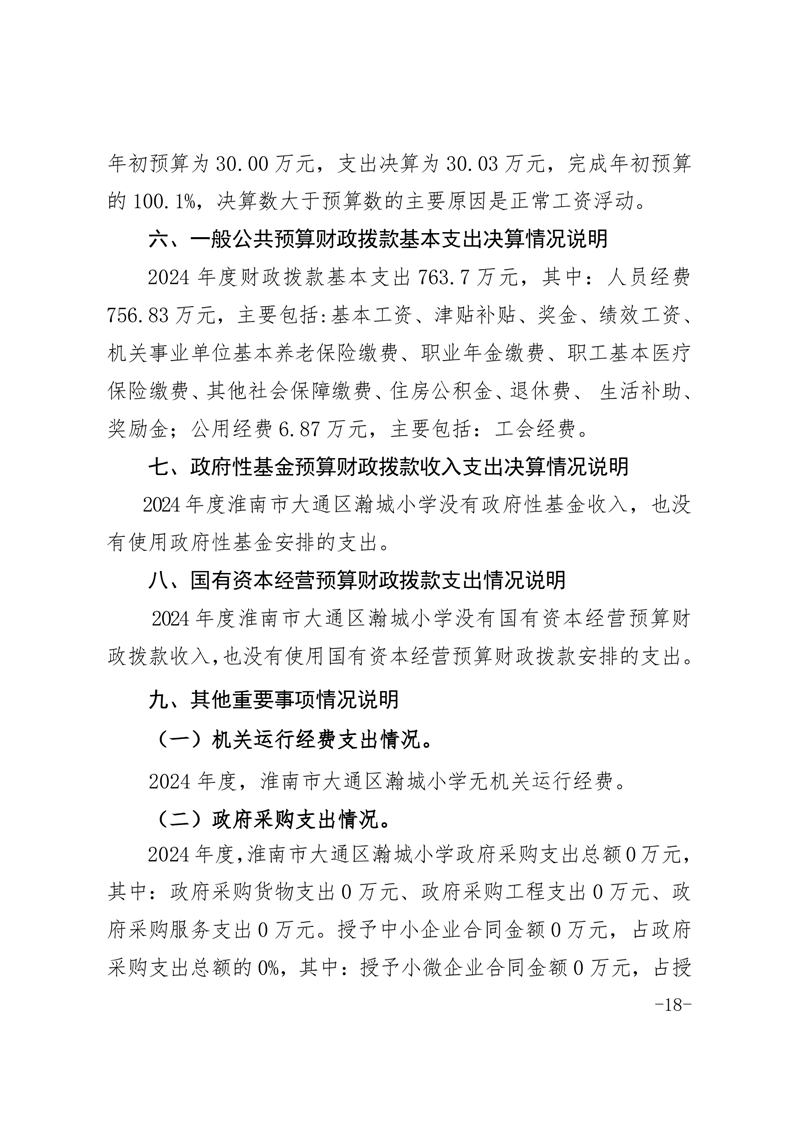 淮南市大通区瀚城小学2024年度决算