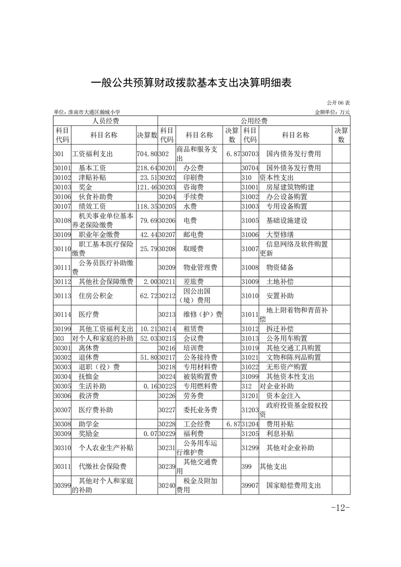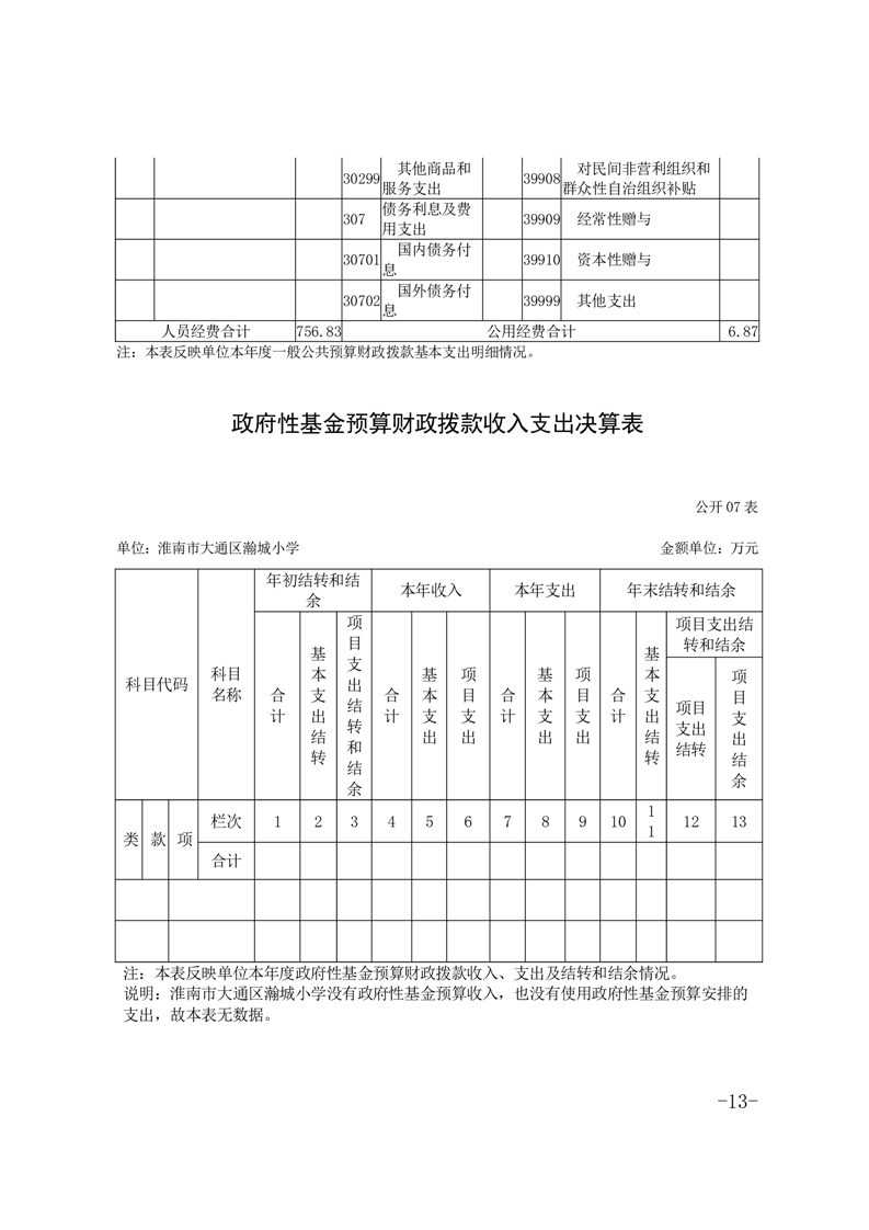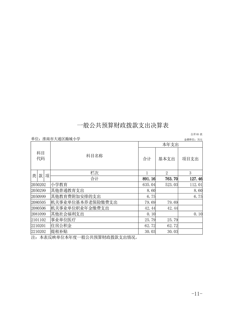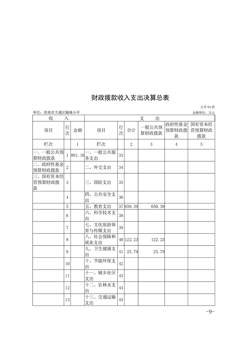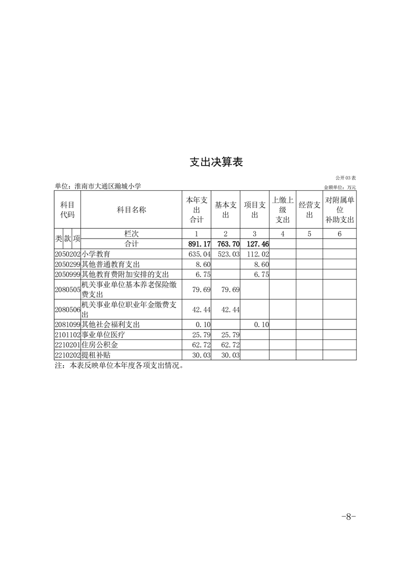 淮南市大通区瀚城小学2024年度决算