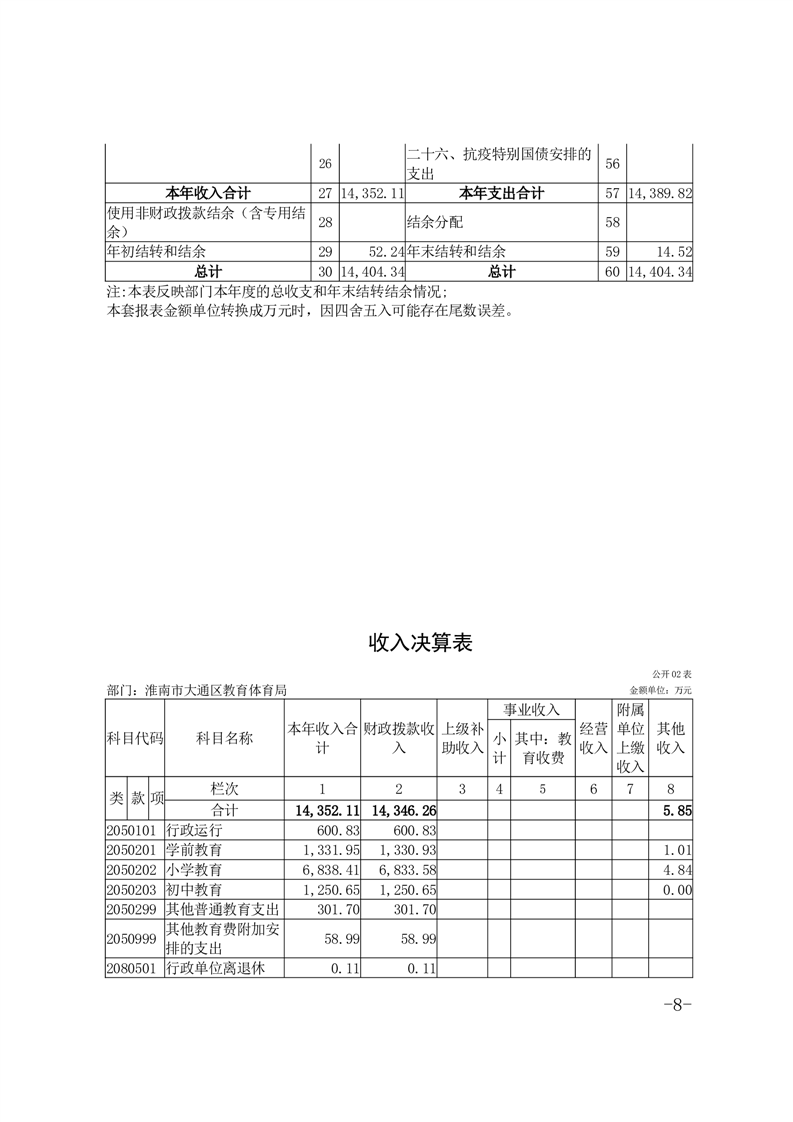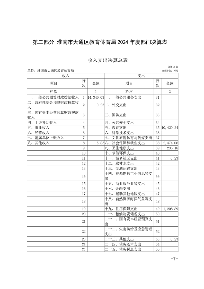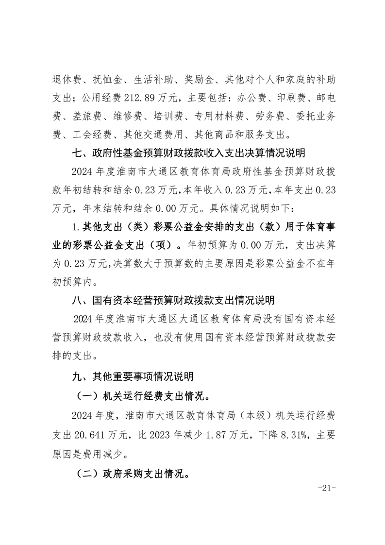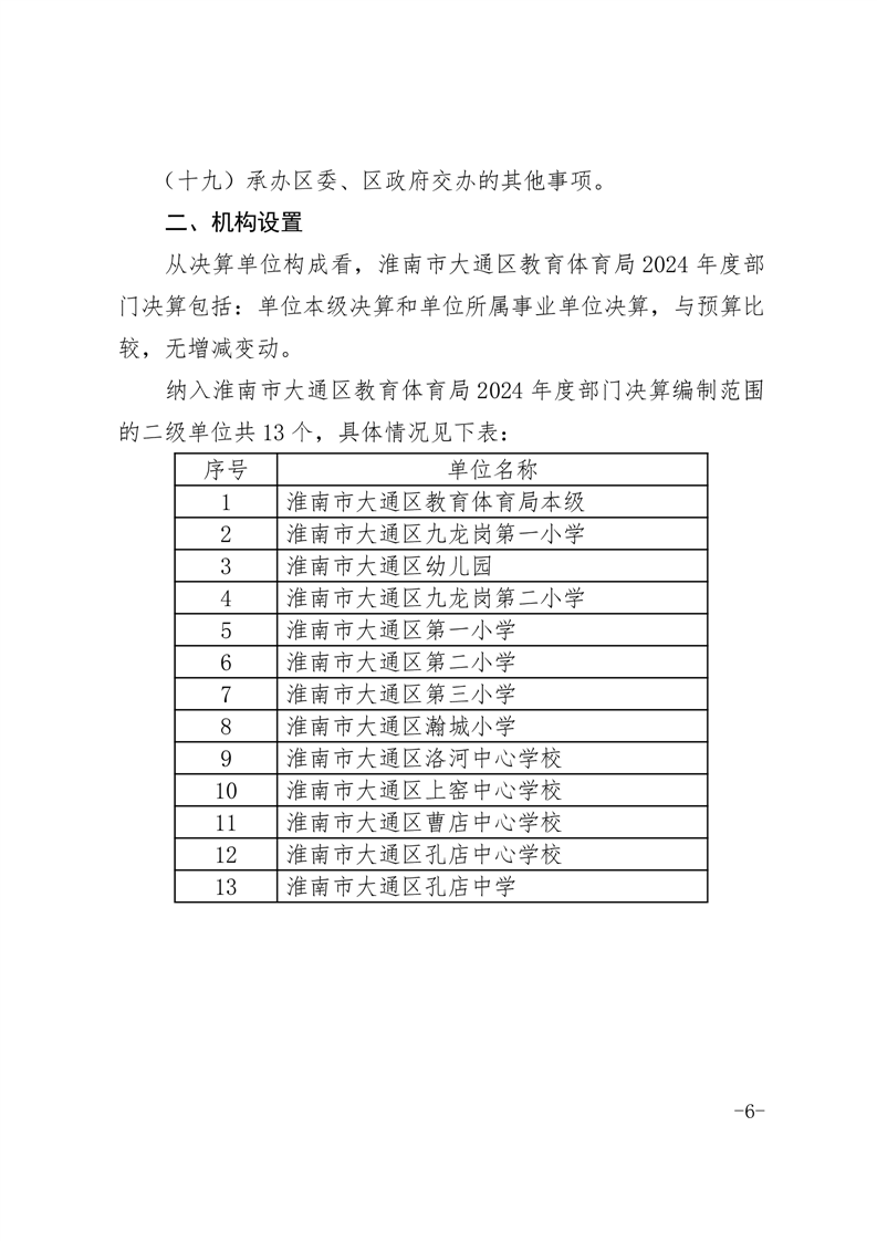 淮南市大通区教育体育局(部门)2024年度单位决算