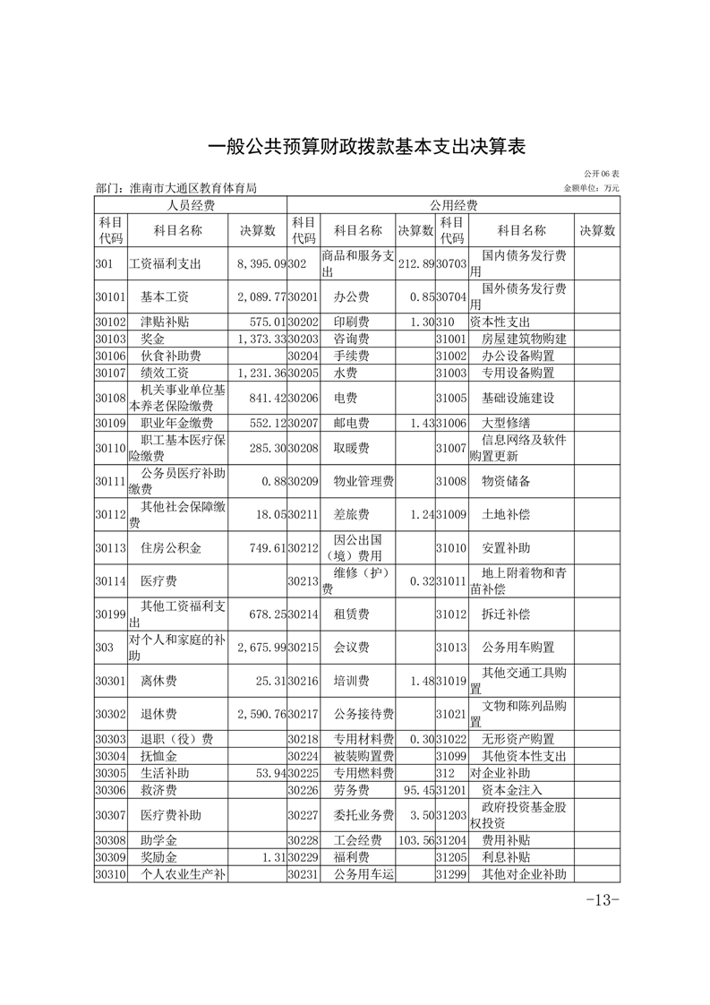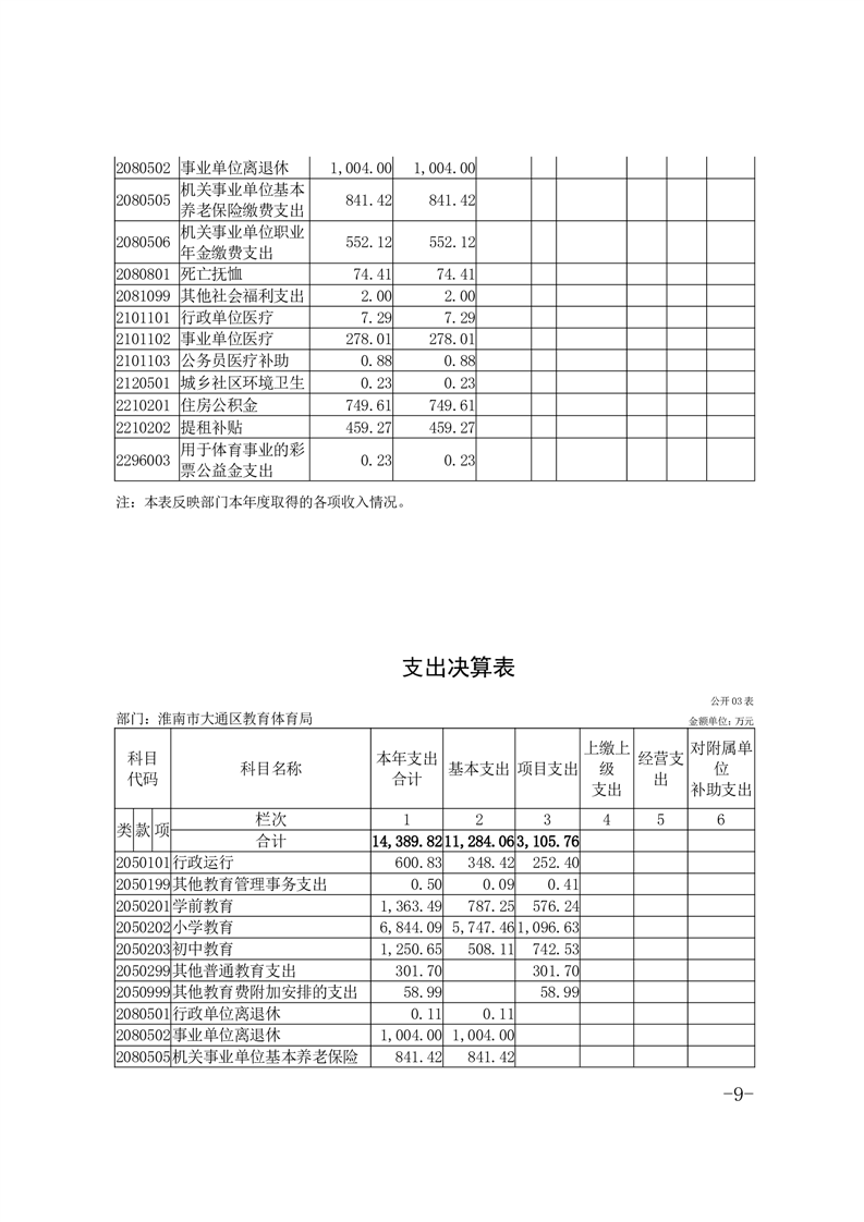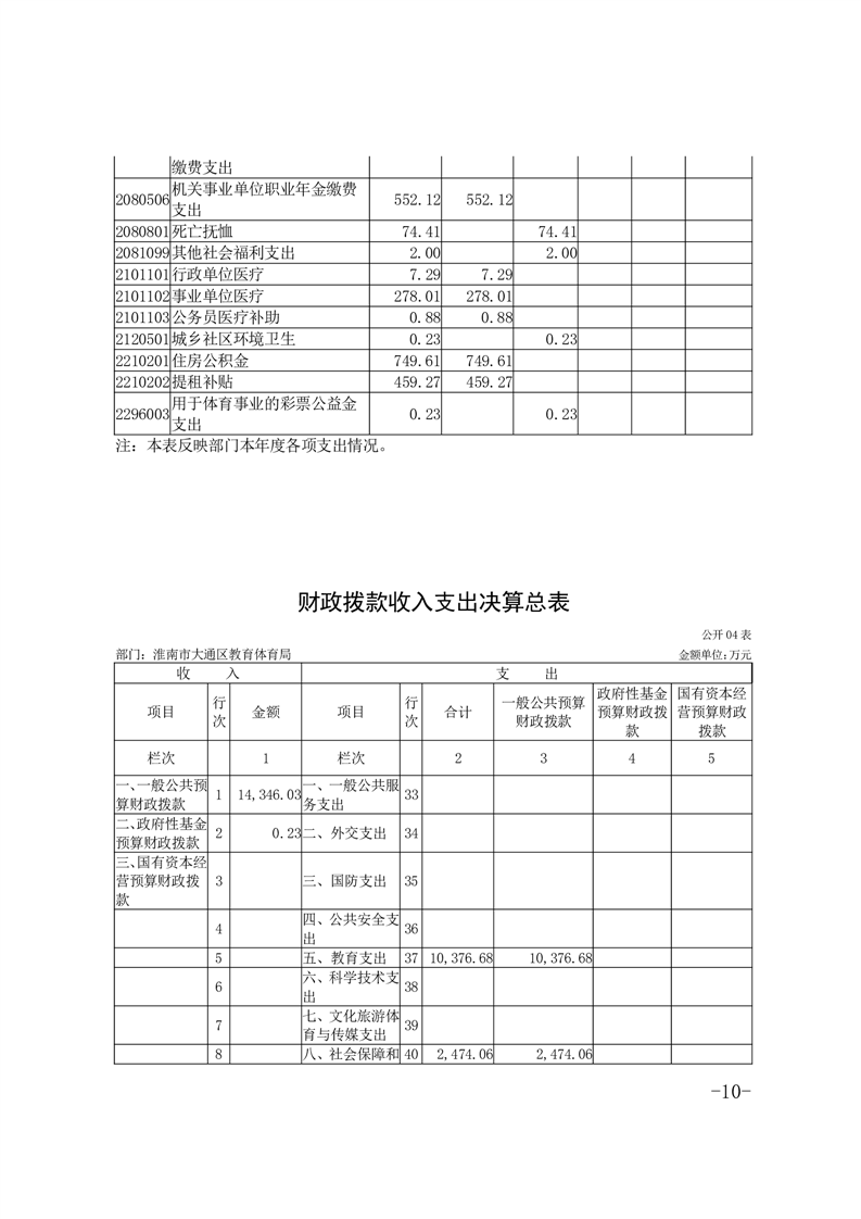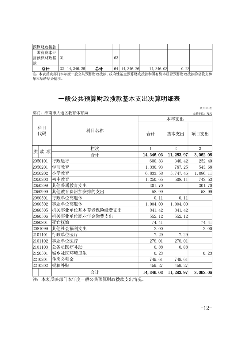 淮南市大通区教育体育局(部门)2024年度单位决算