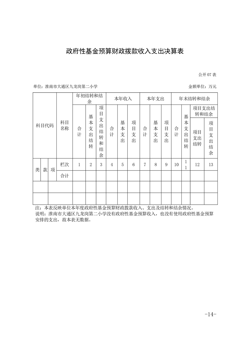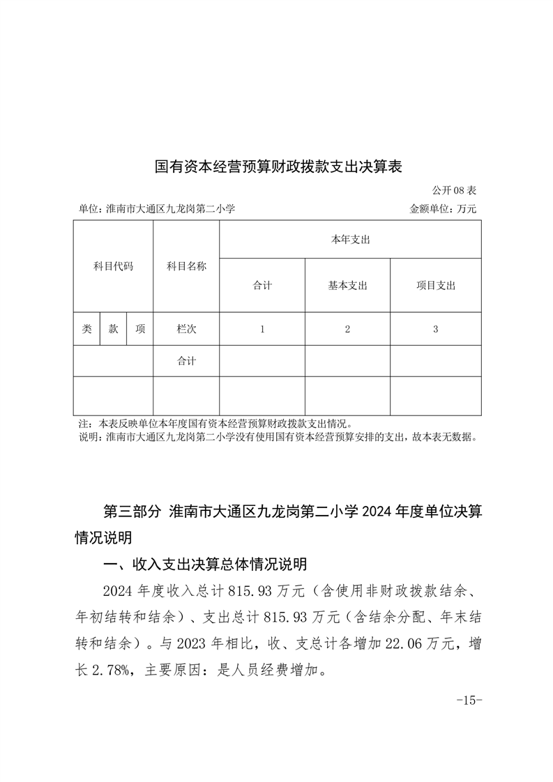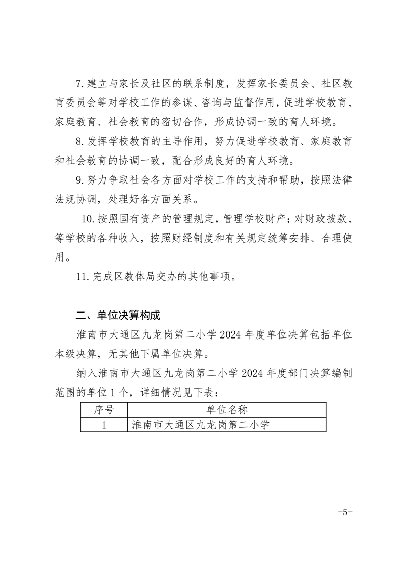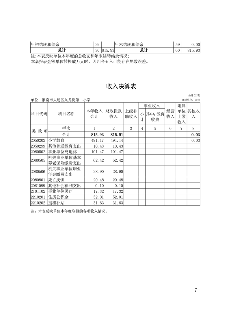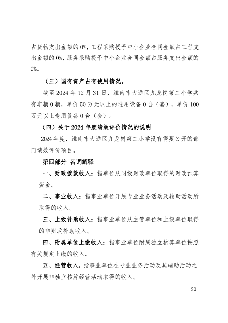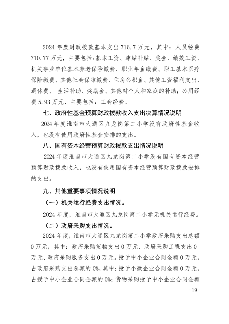 淮南市大通区九龙岗第二小学2024年度决算