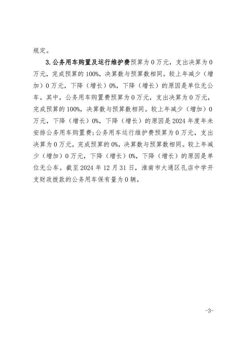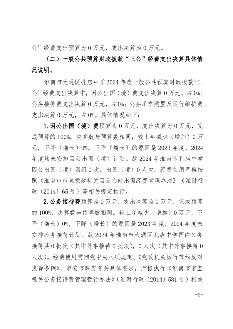 淮南市大通区孔店中学2024年度一般公共预算财政拨款“三公”经费支出决算