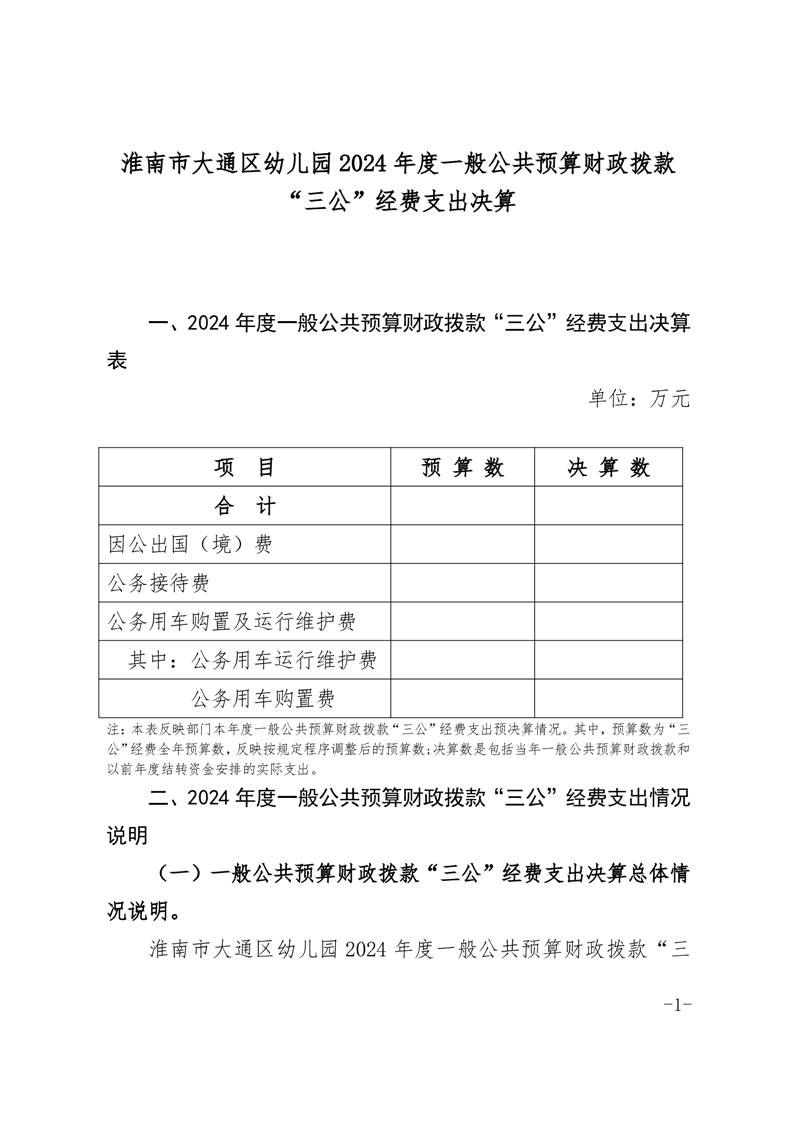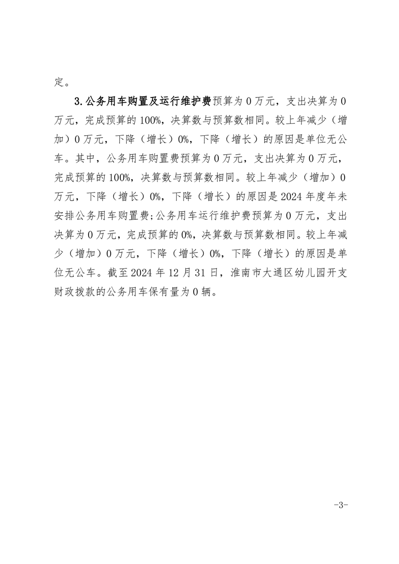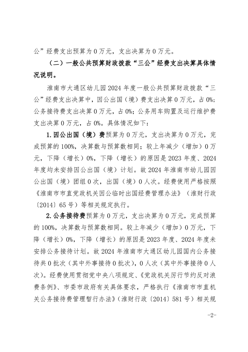 淮南市大通区幼儿园2024年度一般公共预算财政拨款“三公”经费支出决算