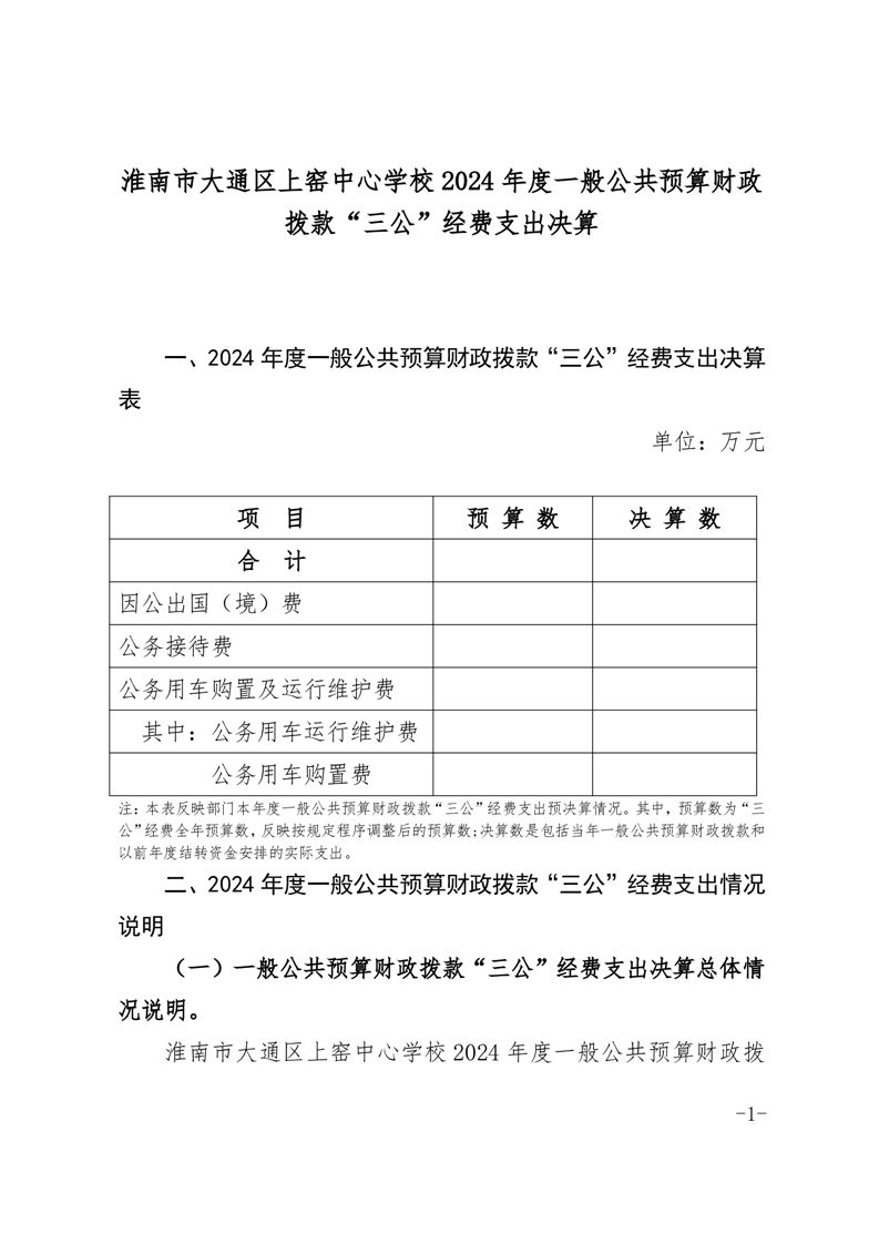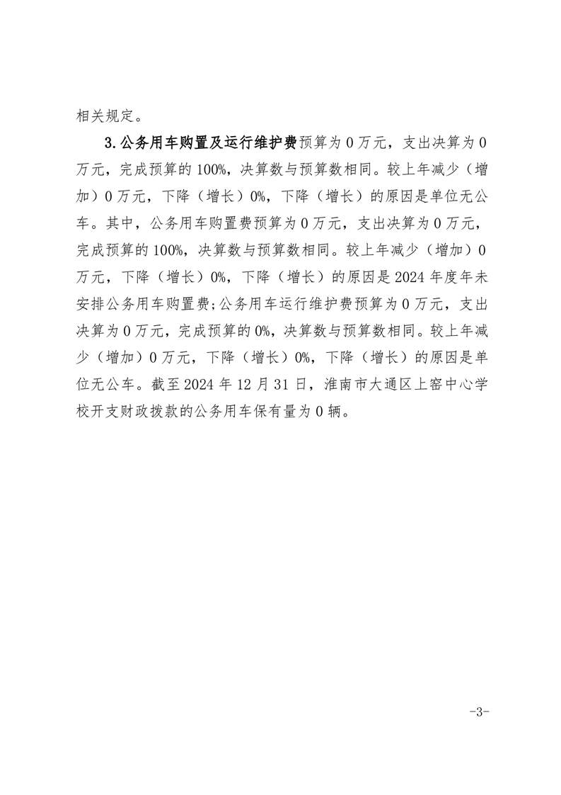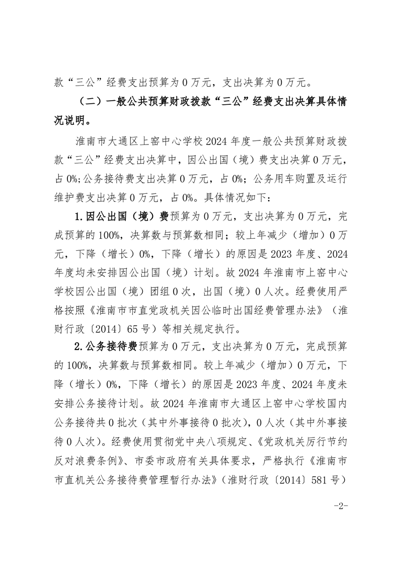 淮南市大通区上窑中心学校2024年度一般公共预算财政拨款“三公”经费支出决算