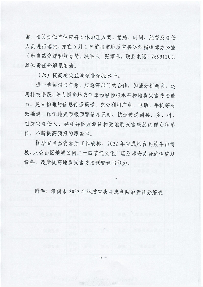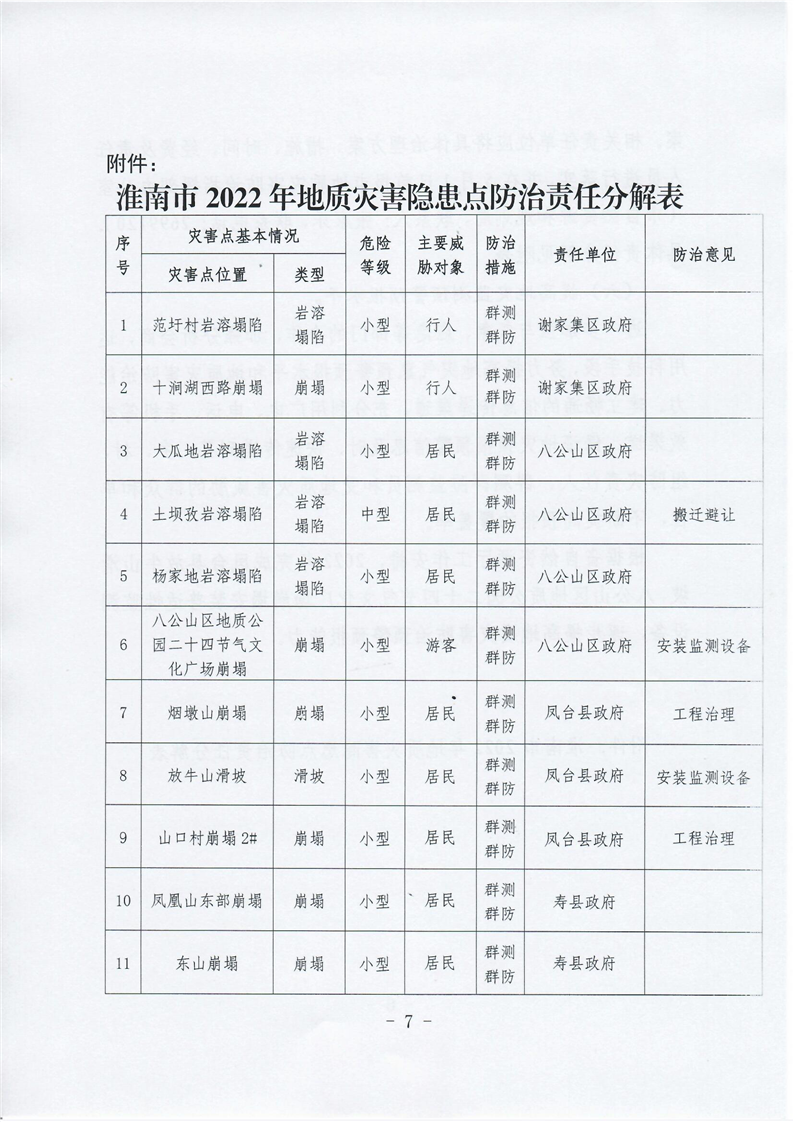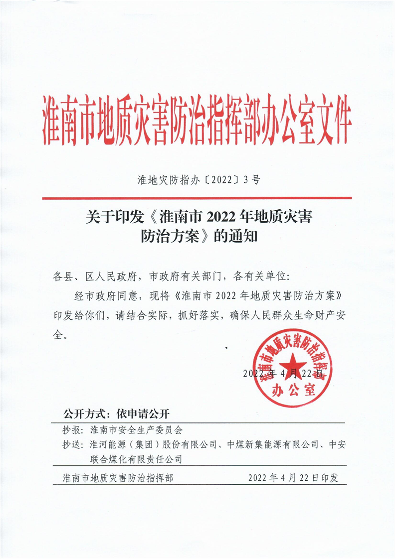 关于印发《淮南市2022年地质灾害防治方案》的通知