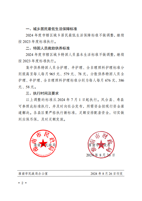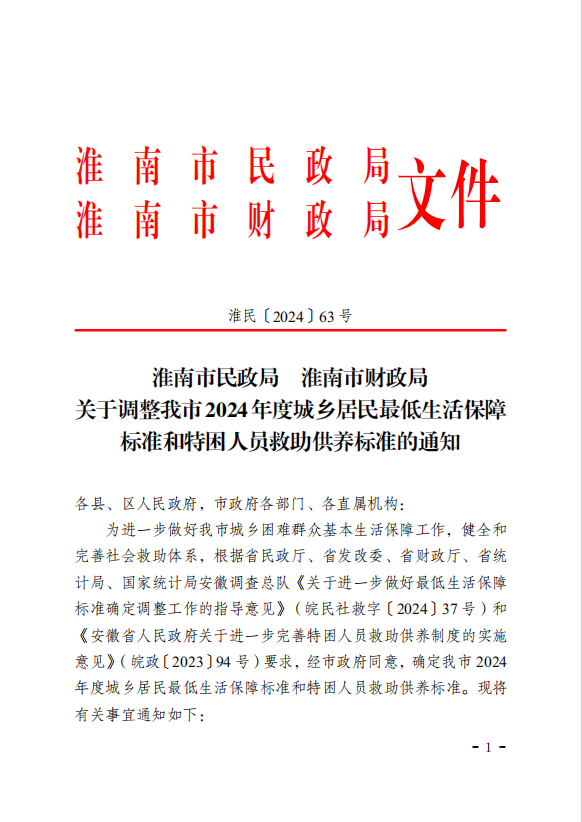 | 名称: | 淮南市民政局淮南市财政局关于调整我市2024年度城乡居民最低生活保障标准和特困人员救助供养标准的通知 |