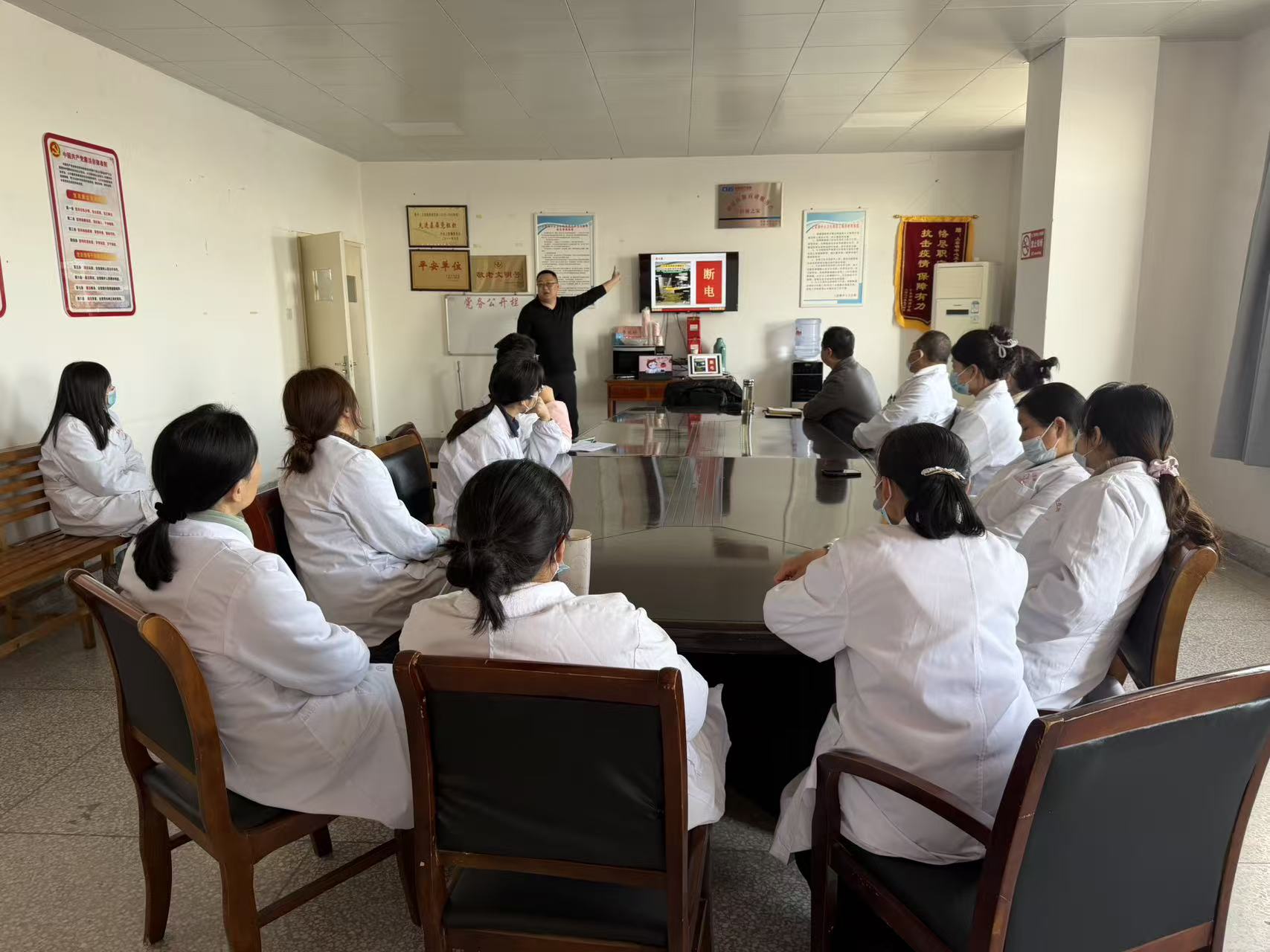 2025年12月9日下午两点半,上窑镇中心卫生院举办消防安全培训,邀请安徽省消防培训专家陈教授给全体职工讲课。陈教授用生动案例给大家讲述消防安全知识。