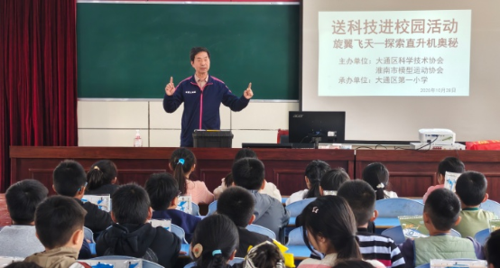 10月28日上午,大通一小多媒体教室内掌声阵阵,由大通区科协与淮南市模型运动协会联合开展的“旋翼飞天——探索直升机奥秘”科技进校园活动在此举行,协会一行4人带来了别开生面的科学盛宴。