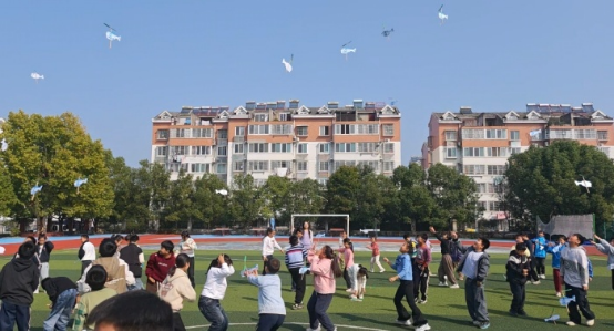 活动中,市模型运动协会的郭鹏旻老师主讲直升机模型课。他以图文结合的方式,用通俗的语言深入浅出地阐释了飞行升力产生的直升机基本原理,还通过制作橡皮筋直升机模型,与学生互动解答同学们的好奇提问,课堂氛围十分热烈 。理论课后,师生们一同前往操场开展放飞实践。在郭鹏旻老师的指导下,同学们亲手调试模型,随着一个个直升机模型腾空而起,操场上响起此起彼伏的欢呼与惊叹声。大家在实操中直观感受科学原理的魅力,动手能力与探索热情得到充分激发 。