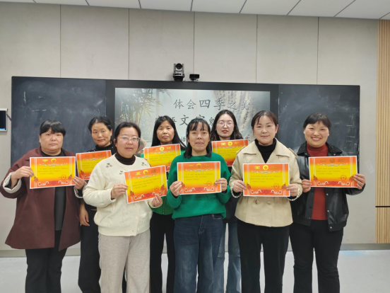 书写环节结束后,活动邀请了三位资深评委老师组成评审团,遵循 “公平、公正、公开” 的原则,从字体规范、结构布局、卷面整洁度、主题契合度等多个维度进行综合评分。评委们逐一审阅作品,细致比对、认真研讨,最终评选出多个奖项:刘玉勤老师凭借隽秀灵动的字迹荣获 “墨香育人奖”,孙晓蕾老师以沉稳大气的书写风格斩获 “笔耕教坛奖”,宋丽老师因笔法精湛、富有创意获评 “书写先锋奖”,朱义侠老师凭借工整规范的作品赢得 “教坛书法奖”,其余参与教师也均获颁相应荣誉,以表彰其在比赛中的用心参与和良好表现。