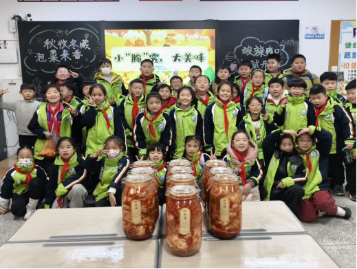 三年级,数学知识与生活劳动展开了一场有趣的对话。数学学科节以“菜坛藏数理,观察悟数学”为主题,孩子们在亲手腌制蔬菜的过程中,变身“小小数学家”。他们计算买菜花了多少钱,探究食盐与水1:10的“黄金比例”,换算调料的配比,还要估算黄瓜条能装满多少坛子。原本抽象的重量、容量和比例知识,在真实的操作中变得触手可及、生动易懂。与此同时,一场名为“小‘腌’究,大美味”的语文实践活动也在同步进行。孩子们在老师的指导下,学习安全使用工具,亲手清洗、切分蔬菜,按比例调配调料,并将劳动成果装入罐中密封。这场活动不仅让孩子们掌握了生活技能,更通过融入传统腌菜文化的讲解,让他们体会到劳动的价值与中华饮食文化的智慧。数学的理性与语文的实践在此交汇,共同诠释了“知行合一”的教育理念。