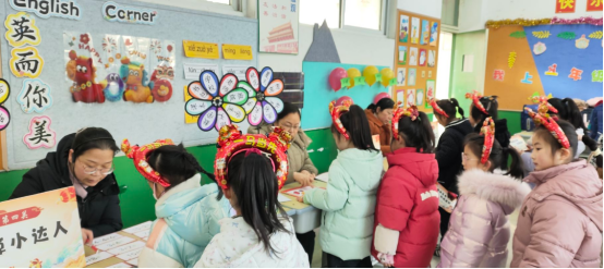 本次活动,老师们精心策划,将语文、数学、美术、科学等学科内容融合,结合校内特色教育课程,开设益智关卡,根据学生的现场表现进行评价。闯关活动基于核心素养,发挥多元评价优势把学科知识与闯关游戏融合在一起。其中,语文设置有“说话接福气”“字词糖葫芦”“诗文红包雨”“能说会道”等不同层次的闯关小环节。数学学科设置了“口算小达人”“操作小能手”和“应用迎新春”三个关卡,最后由老师给出整体评价。