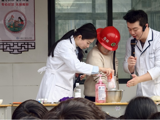 在备受期待的现场互动科学实验环节,科技馆讲解员带领学生沉浸式体验趣味科学实验。讲解员一边操作演示,一边用通俗语言讲解原理,邀请学生戴上安全装备亲手参与实验操作,让孩子们在“玩中学、学中悟”,切实体会到科学就在身边。