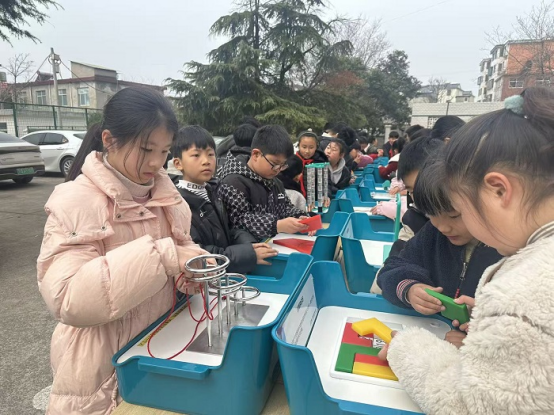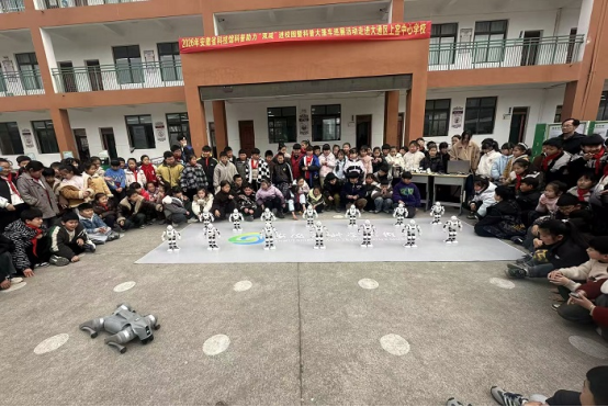 活动现场亮点纷呈,科技氛围浓厚。20件“视界听我说·走近人工智能”主题科普展品亮相校园,涵盖人工智能、力学、电磁学等多领域知识,通过互动体验将抽象科学原理转化为直观感受,吸引师生驻足探索。20台编队表演机器人伴随节奏精准完成动作,1台四足机器人灵活穿梭,智能科技的魅力引得现场阵阵惊叹。40件创新思维训练活动资源包为学生提供动手实践载体,在拼插、调试中锻炼创新思维与协作能力。