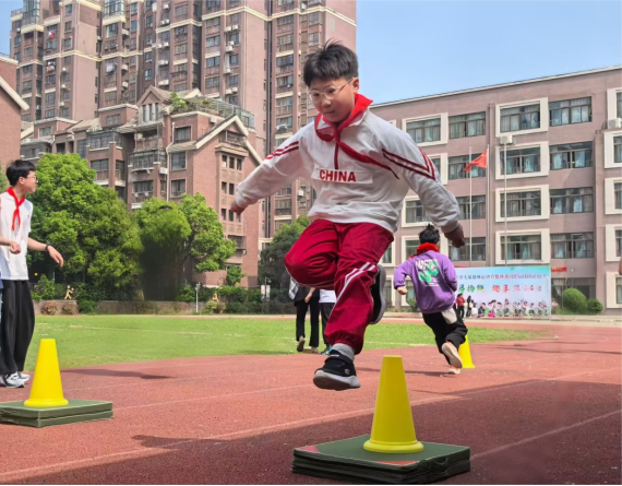 低年级学生参与跳绳、赶球等项目。将体测核心项目跳绳融入竞赛,孩子们在跳跃、奔跑中锻炼下肢力量与协调能力,同时通过遵守比赛规则、尊重裁判指令、为同伴加油鼓劲,学会了秩序与互助。即便球滚偏了、绳绊脚了,也能不气馁、不抱怨,在老师引导下坚持完成,悄然培养起抗挫力与责任感。将体测核心项目跳绳融入竞赛,