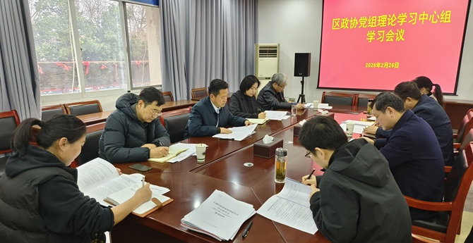 2月26日下午,区政协召开党组理论学习中心组2026年第2次集体学习会。区政协党组书记、主席刘成军主持会议。区委常委、宣传部部长、统战部部长、区政协党组副书记王慧,区政协党组成员张敬亮,区政协党组成员、副主席、孔店乡党委书记何伟,区政协副主席常勇、宫俊,区政协党组成员、秘书长、办公室主任崔海凤参加会议。