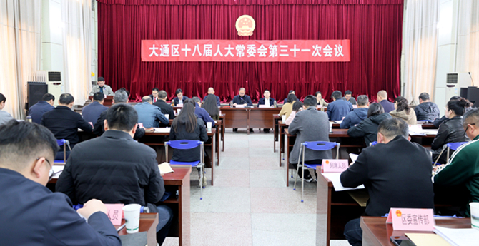 3月31日下午,大通区十八届人大常委会第三十一次会议在区直机关礼堂召开。区人大常委会党组书记、主任段传民主持会议,党组副书记、副主任顾为民,副主任陈光煚、孙春来,区人大常委会组成人员出席会议。