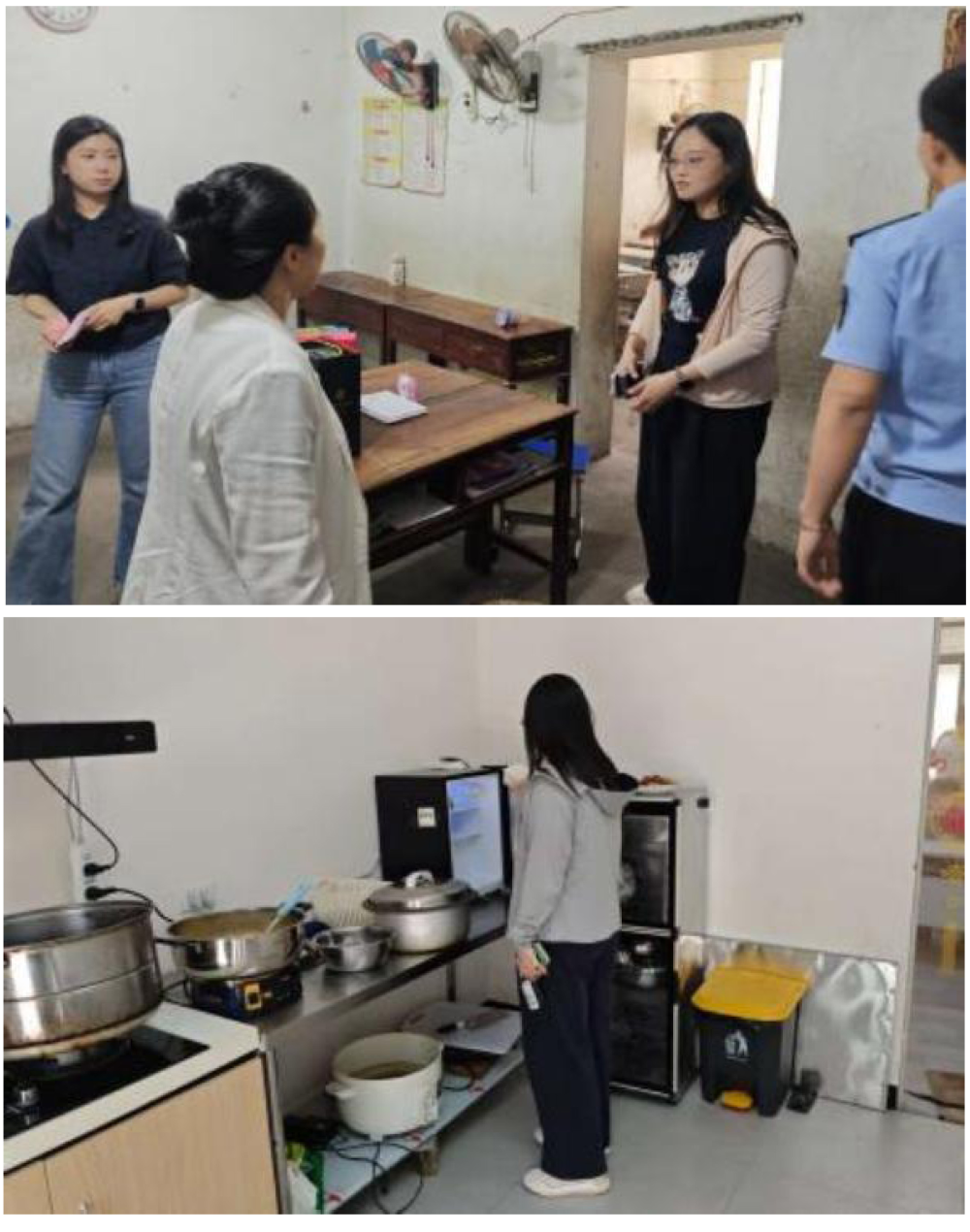 突击检查小饭桌,严把学生安全关。镇人大联合区应急局、区市场监管局、区教体局在镇域内对学校附近的小饭桌开展食品安全专项检查,重点对食堂从业人员健康管理,各类安全生产设施设备,食物原材料及辅料采购记录台账等进行食品安全隐患排查。经过仔细检查发现其中一家“小饭桌”尚未办理执照且正在营业,在食品消毒设施和卫生条件上存在不达标、没有纳入监管范围等问题。当场勒令其停止营业,补办营业执照,对不达标的地方立刻进行整改,直至达标为止方可营业。