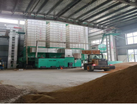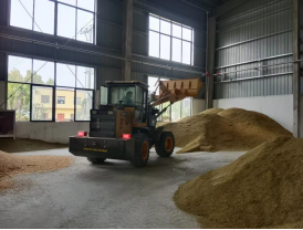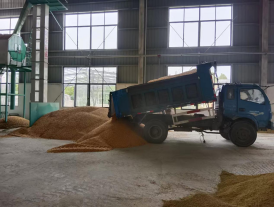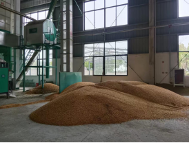 2023年8月,九龙岗镇利用乡村振兴衔接资金,建起王楼村农业生产大托管农事服务中心,配备了5台运输车、3台烘干机、一台地磅和一台铲车,提供运输、仓储、销售“一站式”服务。智能化烘干设备,采用生物质颗粒燃料,实现低碳环保作业,仅需10多个小时就能将稻谷烘干至含水率12.5%的安全储藏标准。