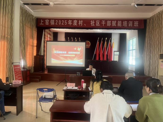 为进一步夯实基层反邪教工作根基,提升村、社区干部识别、防范和抵制邪教的能力水平,2025年10月24日,上窑镇在2025年度村、社区干部赋能培训班中,专门增设反邪教知识普及宣讲环节,为全镇基层治理骨干送上针对性“课程包”。