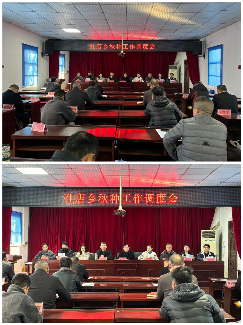 2025年12月3日上午,孔店乡在乡大会议室召开秋种工作调度会。乡党委书记何伟主持会议,乡领导班子成员、各村书记及包村干部参加会议。
