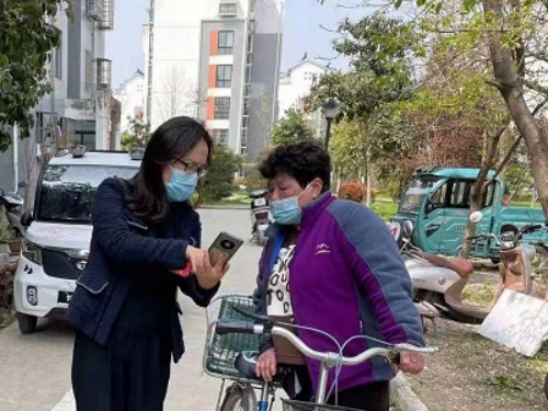 图为大通区纪委监委工作人员帮助群众在皖事通上申请核酸检测预登记。