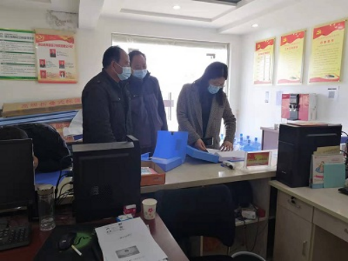 图为大通区纪委监委工作人员在村委会检查村防疫工作台账。