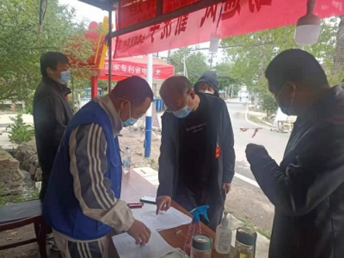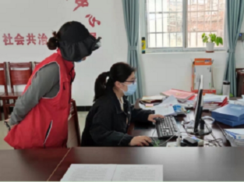图为大通区纪委监委工作人员协助方楼村村委会制作出入证明。