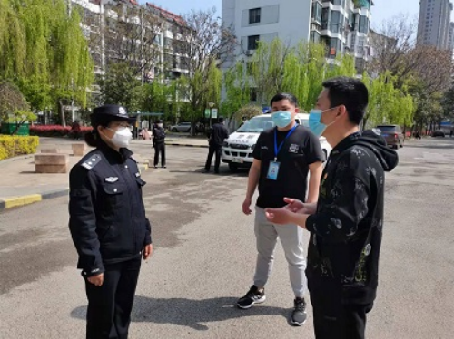 图为大通区纪委监委工作人员向警察同志了解派出所与社区配合疫情防控情况。