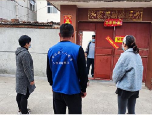 图为大通区纪委监委工作人员上门慰问居家隔离群众。