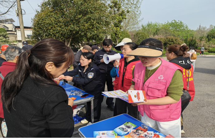 庙会现场人流如织,民俗表演、特色小吃吸引四方群众,老人儿童穿梭其中,是治安防范与普法宣传的关键场景。联合工作组立足人员密集、停留时间长的特点,搭建“流动宣讲台+定点咨询点”双阵地。在庙会入口、核心活动区宣传点位,悬挂“高擎反有组织犯罪法利剑,护佑城乡安宁群众安乐”“全民反诈守钱袋,平安法治伴同行”等主题横幅,摆放图文并茂的普法手册,让群众在驻足间隙直观感知法律知识。