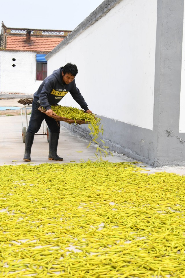 2019年7月18日,在大同市云州区唐家堡村,村民正在晾晒黄花。 新华社记者 杨晨光 摄