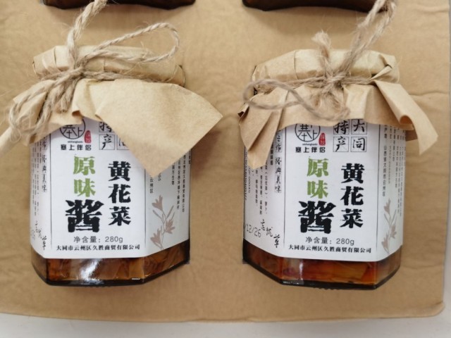 这是2020年7月12日在大同市云州区一家商店拍摄的以黄花为原料制作的黄花酱。新华社记者 王劲玉 摄
