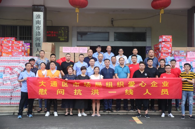 捐助活动由区市场监督管理局发起倡议,得到了君临食品、蒙牛、六个核桃、云河米业、道和食品、永昊环保公司、大通农家超生活超市等25家企业的积极响应。25家企业向区防汛抗旱指挥部捐助了方便食品、牛奶、面包、饮用水等生活物资2100箱,价值约8万元。为大通区防汛工作提供了有力的物质保障。