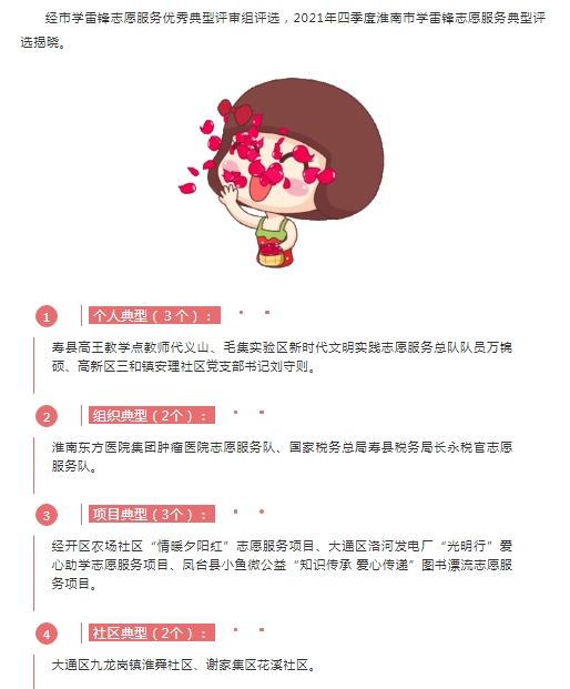 2021年四季度淮南市学雷锋志愿服务典型评选揭晓 我区3个优秀典型榜上有名