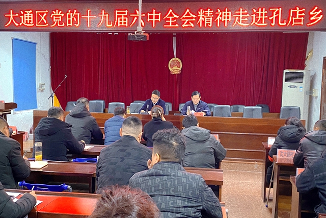 1月25日下午,大通区党的十九届六中全会精神宣讲走进孔店乡,区委常委、副区长孙涛赴孔店乡作宣讲报告,孔店乡党政班子成员、二级机构负责人及各村书记聆听报告。
