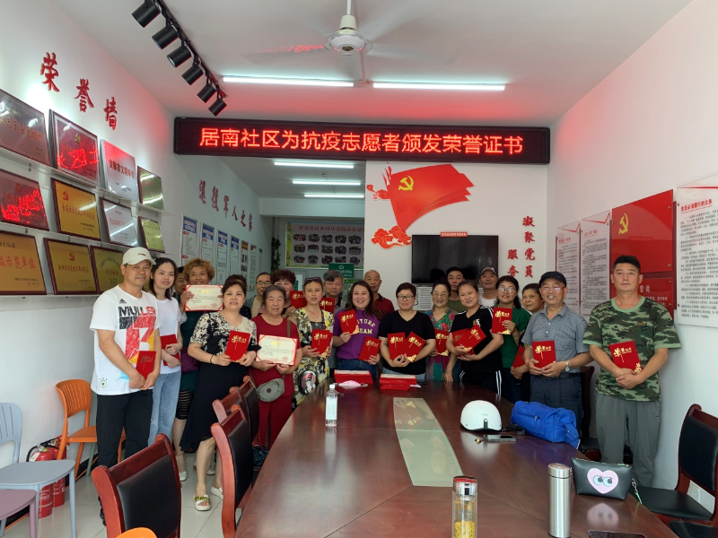 大通街道居南社区志愿服务队成立于2018年8月,注册志愿者人数1026人,服务总时数5335.2小时。居南社区志愿服务队细分了党员志愿者服务队、医疗卫生志愿服务队、文体服务志愿服务队、环保志愿者服务队4支志愿服务队。