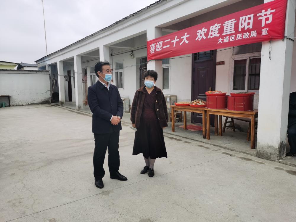 九九重阳节,浓浓敬老情。10月4日上午,在一年一度的重阳佳节到来之际,区委副书记、区长明冠雷到孔店乡第一敬老院看望慰问老人,送去党和政府对老人的关怀。明冠雷实地查看老人居住条件及用餐情况,并强调天气转冷,要注意老人取暖用电安全,确保不出现安全生产事故。区民政局、区应急局、区市场监管局、区政府办、孔店乡负责同志陪同。
