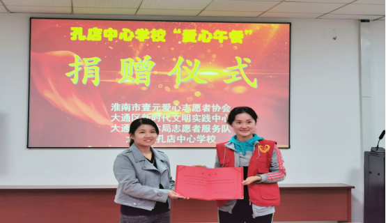 淮南市壹元爱心志愿者协会向孔店中心学校捐赠爱心午餐