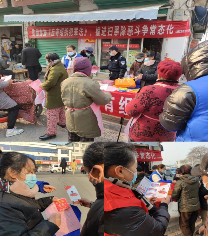 12月27日上午,由大通区委政法委牵头,上窑镇综治中心、上窑派出所、上窑司法所、上窑社区共同参与,在上窑中心街开展了“贯彻实施《反有组织犯罪法》·推进扫黑除恶斗争常态化”宣传活动。