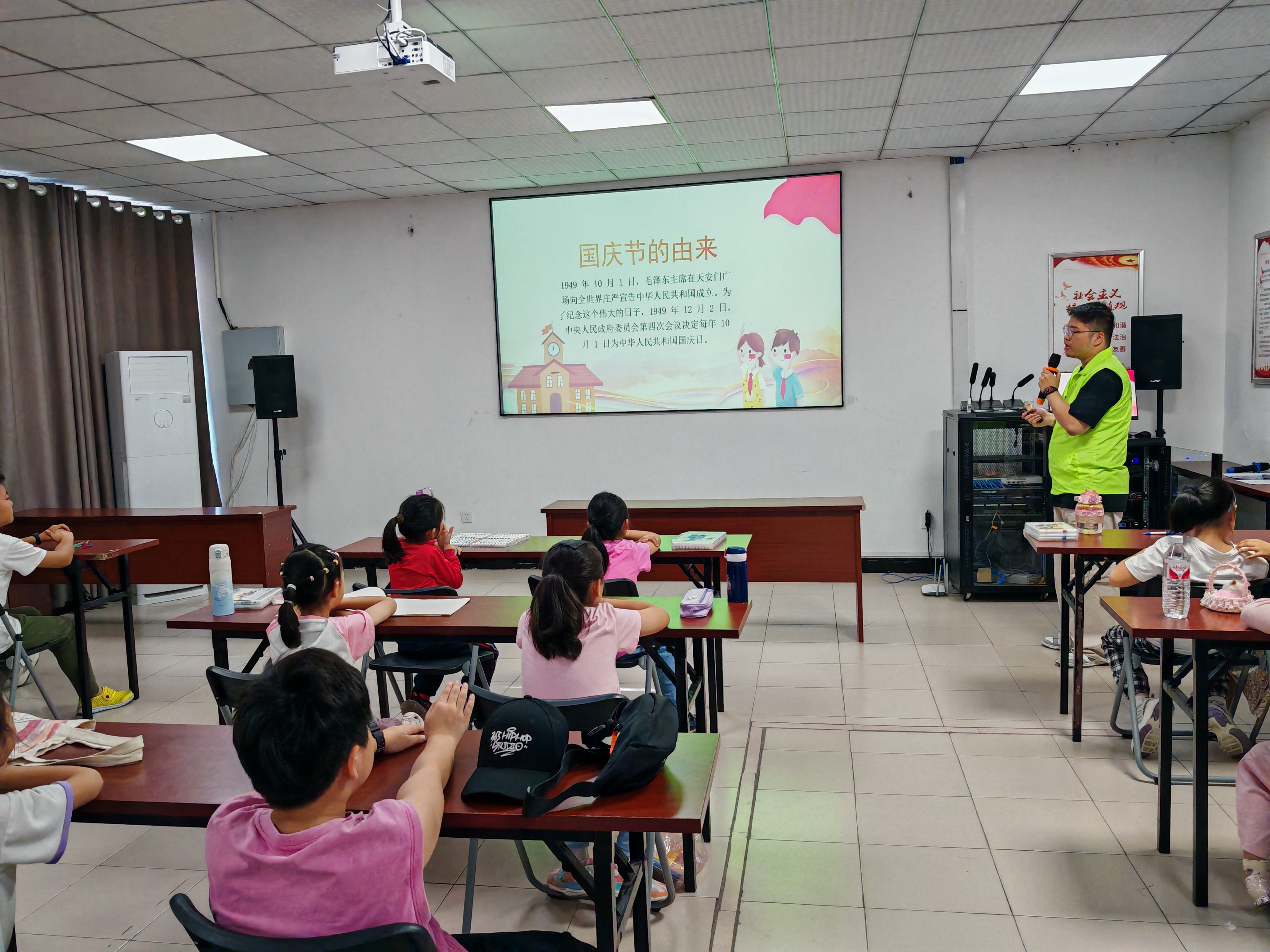 活动现场,首先大家合唱《我和我的祖国》,共同祝愿祖国繁荣昌盛,国泰民安。随后志愿者通过PPT讲解国庆节的由来和历史意义,带领孩子们重温新中国历史,认识五星红旗的含义和象征,激发他们的爱国热情,传承红色基因。接下来进行国庆知识问答竞赛,孩子们纷纷举手抢答,现场气氛热烈。活动最后,为了让孩子们对国庆节有更深的了解,培养孩子们的爱国主义情怀,小朋友们自己动手绘画国庆绘卷。小朋友们在这里用独特的方式庆祝祖国母亲的生日,表达了对伟大祖国的热爱和祝福,祝愿祖国母亲明天更加辉煌、更加美好。