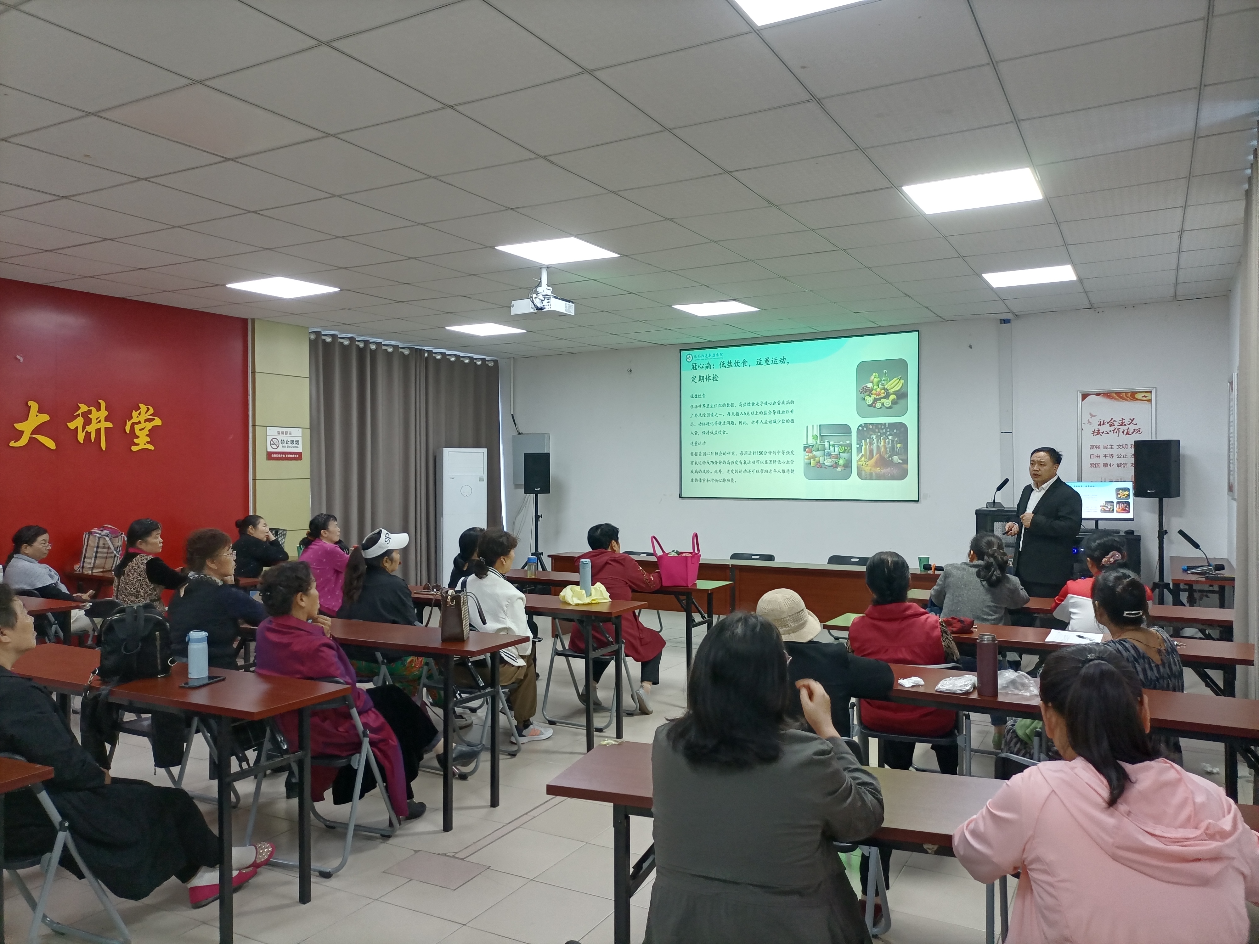 九九重阳节,浓浓敬老情,重阳节到来之际,为弘扬中华民族尊老、敬老、爱老、助老的传统美德,进一步关爱老年人身体健康,2024年10月10日下午,大通区新时代文明实践中心联合淮南市图书馆、区妇联、新康医院、淮南市新时代志愿者联合会开展“我们的节日•重阳”家庭文明建设活动,为老年人进行常见疾病健康科普,辖区内二十余名居民参加。